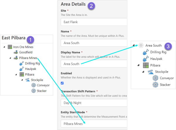 Note: An area entity that is part of the nominated hierarchy, is selected as the Entity Start Node when a site area is configured. Both the area entity and the site area are different items and can have the same or different names.