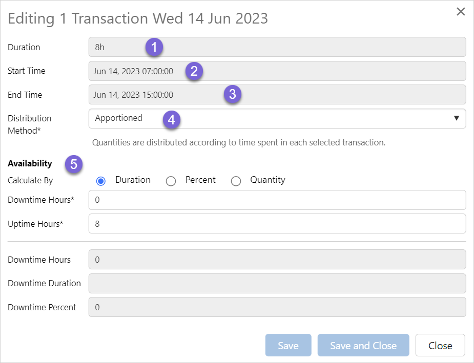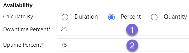 Calculate by Duration enables the Downtime and Uptime hours to be entered to determine the equipment availability.