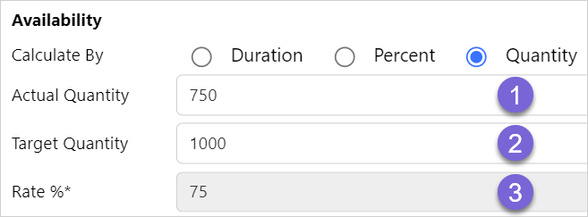 Quantity enables the downtime to be entered as an amount and a percentage rate to be calculated.