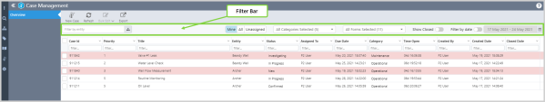 The Filter Bar is a part of the Case Management functionality, and enables you to display only the cases that are of most interest to you in the Cases Table.