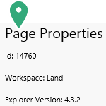 Explorer's page properties display audit information, as well as page details (workspace, ID, Explorer version when the page was created).