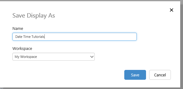 Finally, we'll save the new page as "Date Time Tutorials" in My Workspace.