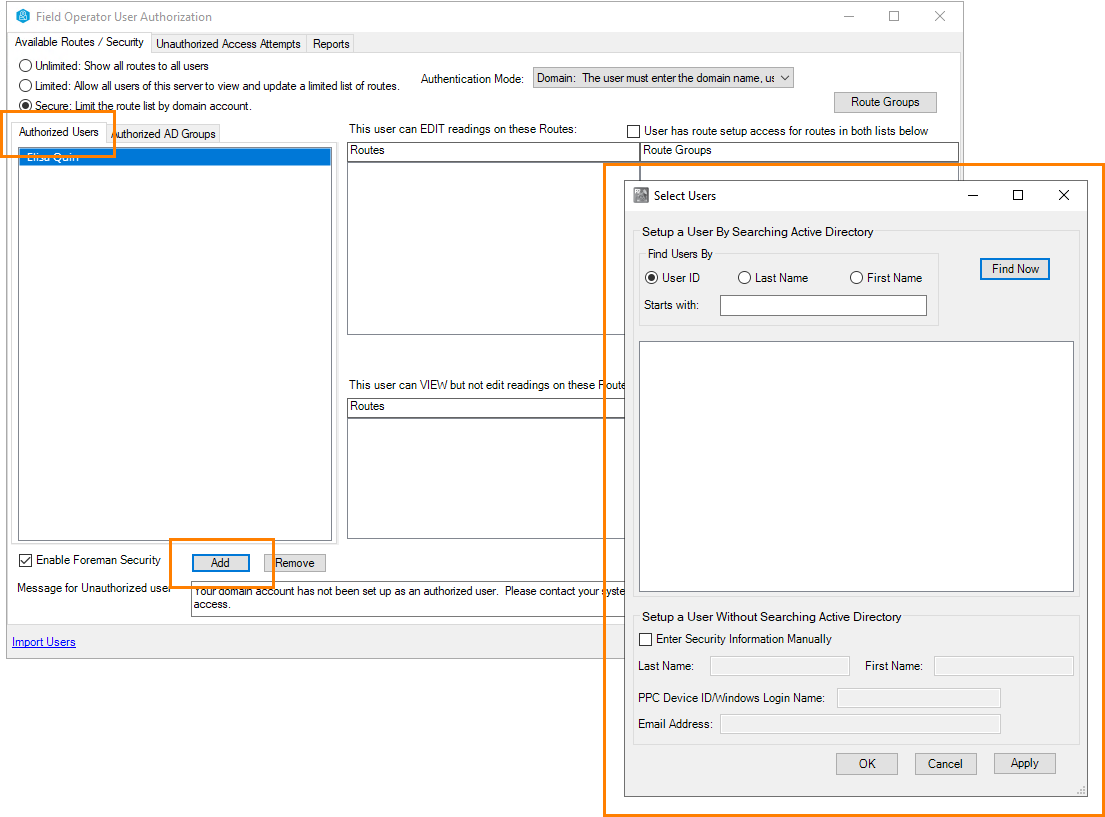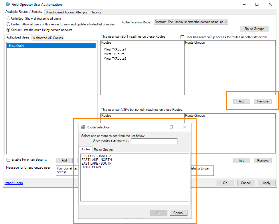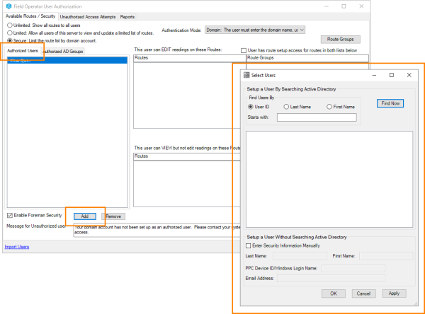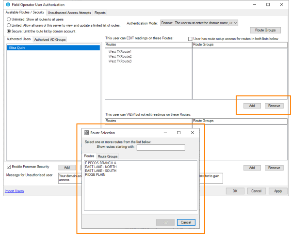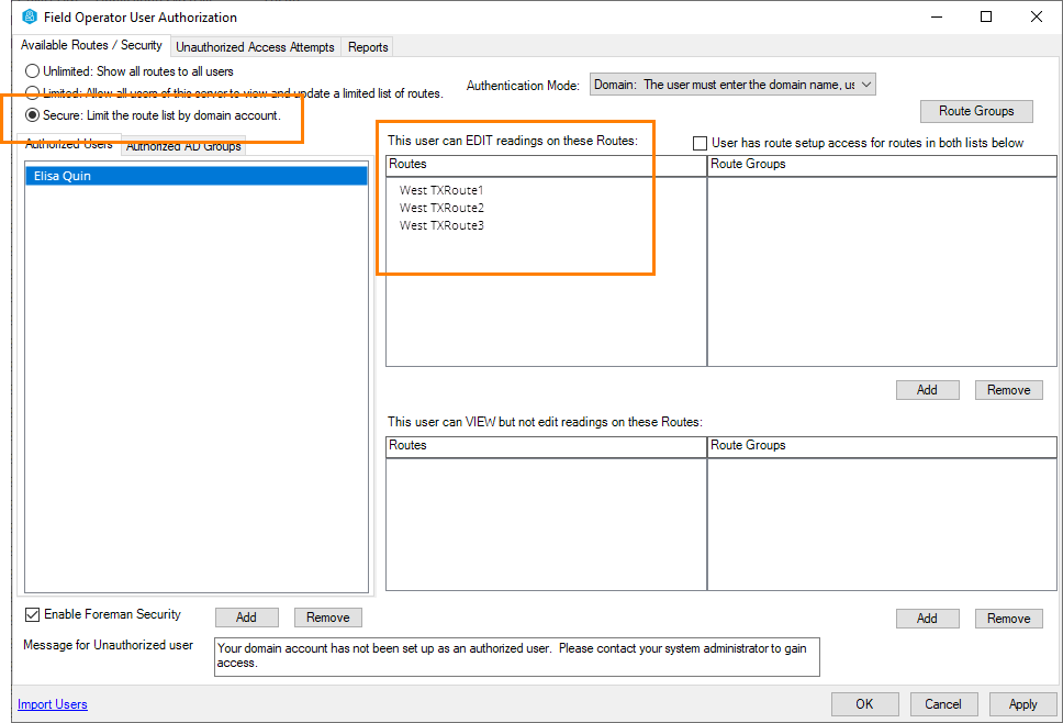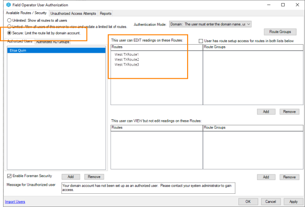 Now visit the User Authorization screen to assign users to routes. See User Authorization in the Field Operator Configuration Utility