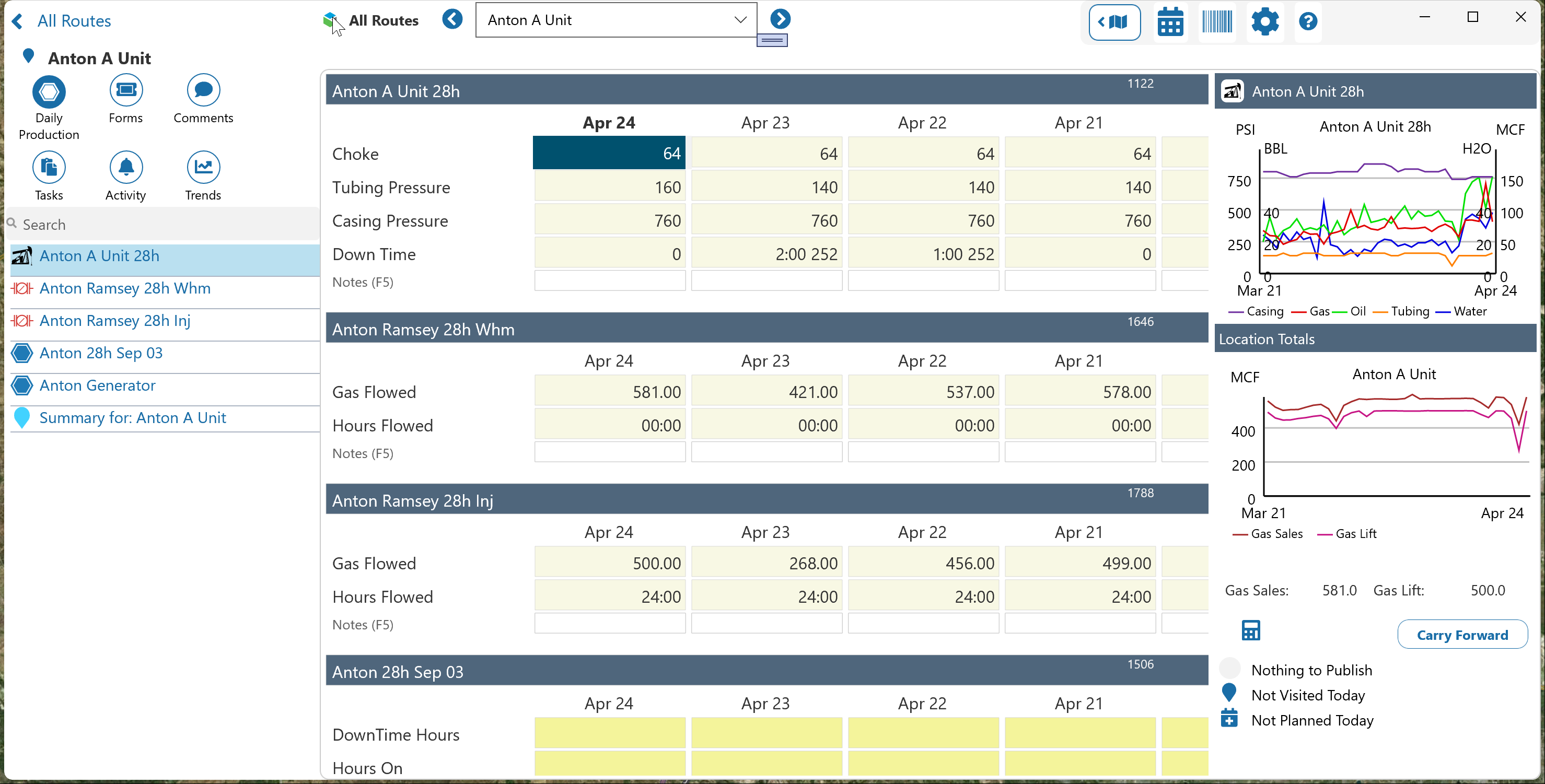 Readings that are not entered daily are entered as Forms in Field Operator (sometimes referred to as Transactions in Merrick). Forms include readings such as Run Tickets, Water Draws and Well Tests along with custom readings that you can define to meet your company’s needs.