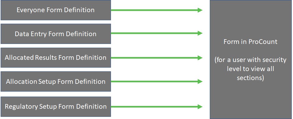 Screens in the Merrick Metadata Config Utility are comprised of ‘sections’. Administrators configure a screen component to fill in each section. Combined, these sections define the screen to be displayed in ProCount.