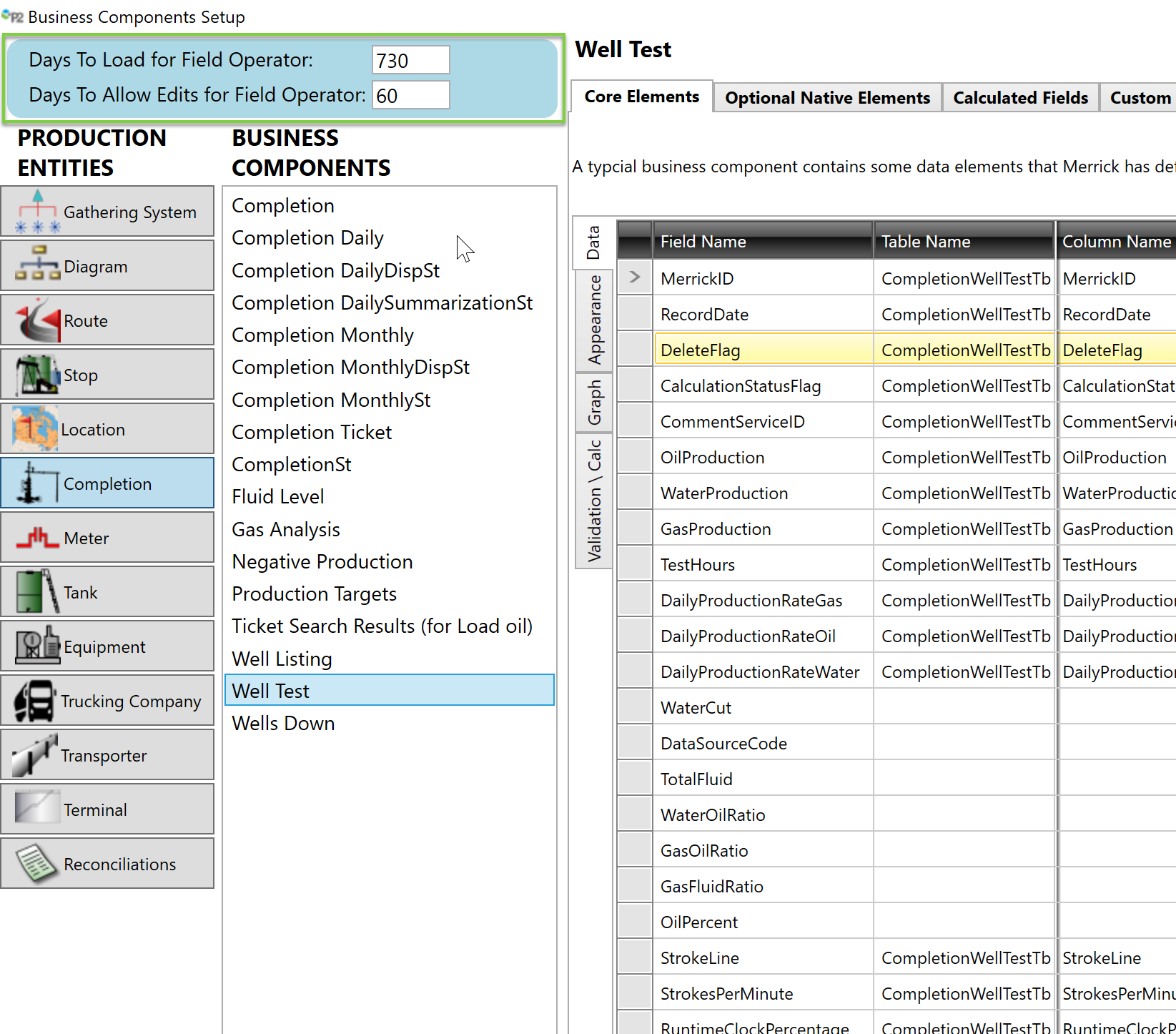 Visit the Business Components Setup screen in the Merrick Metadata Configuration Utility to define how many days of readings should be downloaded and editable for Forms in Field Operator: Explorer Edition.