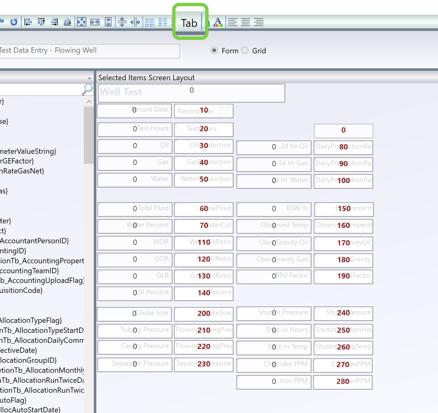 Tab Order: The Tab Order defines the sequence in which the fields are displayed on the Form in Field Operator. While configuring the form in the Metadata Configuration Utility, click the Tab button in the toolbar to set the order for the fields in Field Operator. This setting also affects ProCount as it defines the sequence that fields will receive focus as the user presses the tab key.