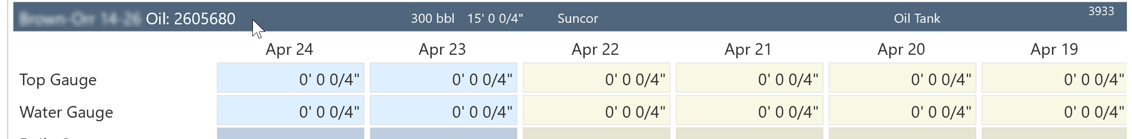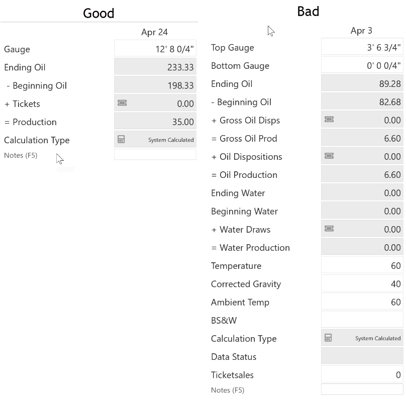 For example, in many areas the user will never enter water gauges on an oil tank. Also, in such an area the field user is only concerned with the Gross oil production and does not record temperature and density daily. Although Merrick is flexible enough to provide daily net oil calculations on the tank daily screen, including those fields in an area where they are not needed causes the user to only see one tank at a time on his screen and can slow down data entry as he needs to scroll through his screen looking for what’s pertinent.