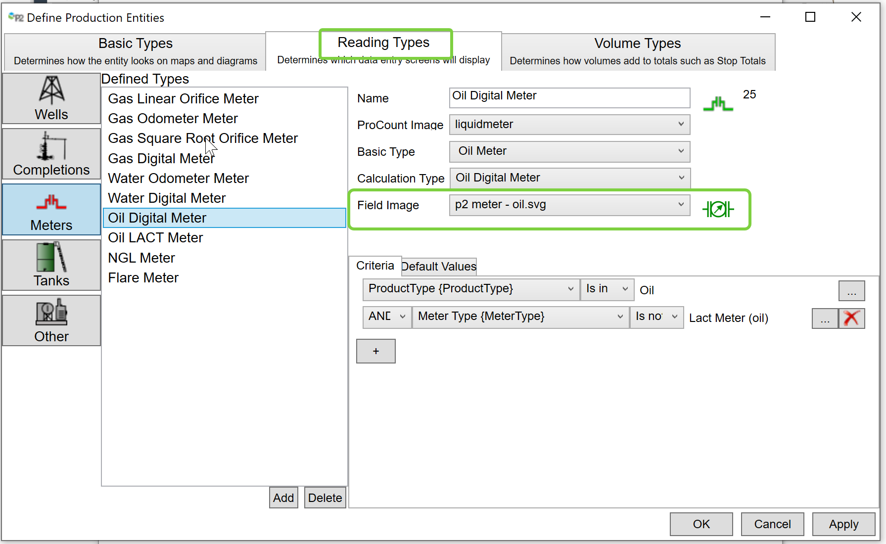 Once imported using the Metadata Manager, an SVG image can be assigned on the Define Production Entities screen, Reading Types tab.