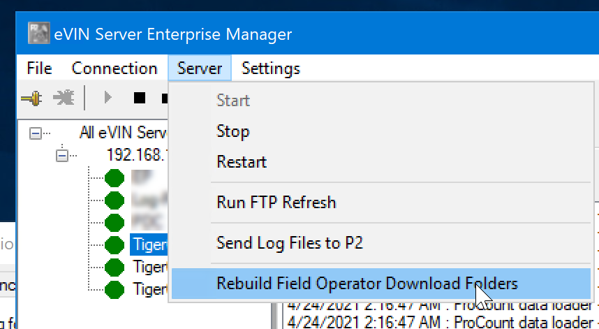 3. Invoke Rebuild Field Operator Download Folders in the Enterprise Manager and wait for the message “Loaded ___ locations in ___ seconds” in the log