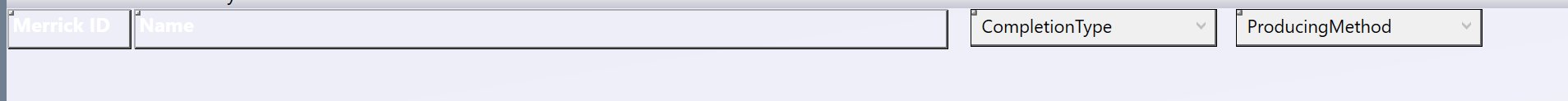 First add fields to the Form view of the header area. If Name and Merrick ID are already on the form, leave them there. If adding a field tied to a picklist, be sure that the picklist attributes are correctly filled in and that the text alignment is corrected.