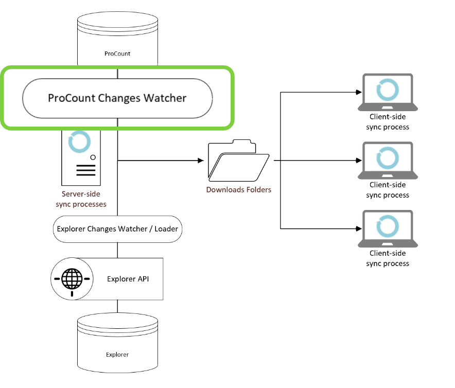 Note: Changes uploaded from Field Operator are automatically loaded into the downloads folder. This means that if Field Operator user 1 uploaded a change and Field Operator user 2 had the same location on his device, the change would flow to Field Operator user 2 without the ProCount Changes watcher executing.