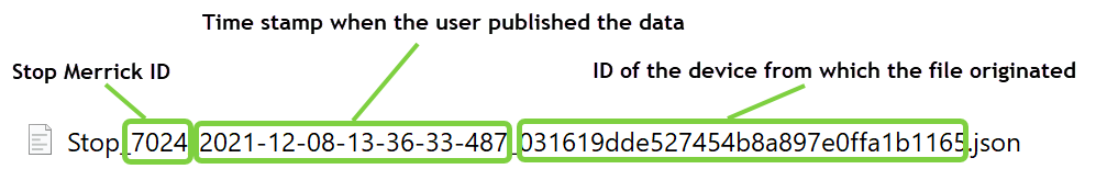 The name of an upload file contains information about the device from which the data was sent and the time stamp when the data was sent.