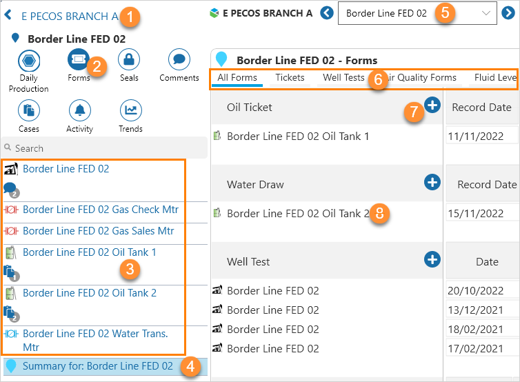 | 4 | Location | Click a location to view all the forms for the location. |