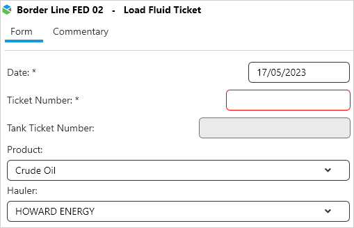 Comments can be added by selecting the Commentary tab at the top of the form.