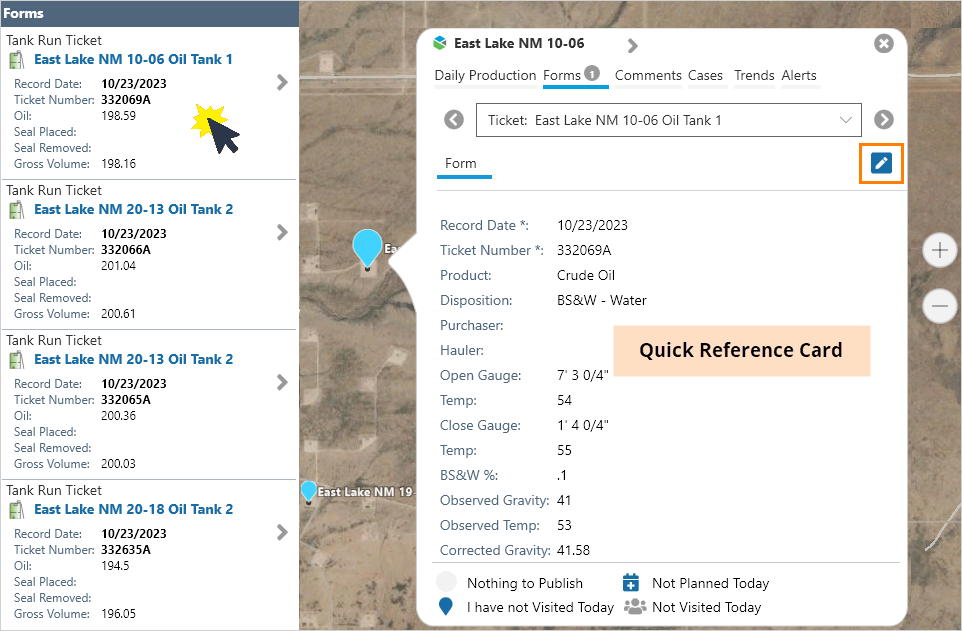 To open a form click the Location Summary, and the Quick Reference Card will open and display the selected form.