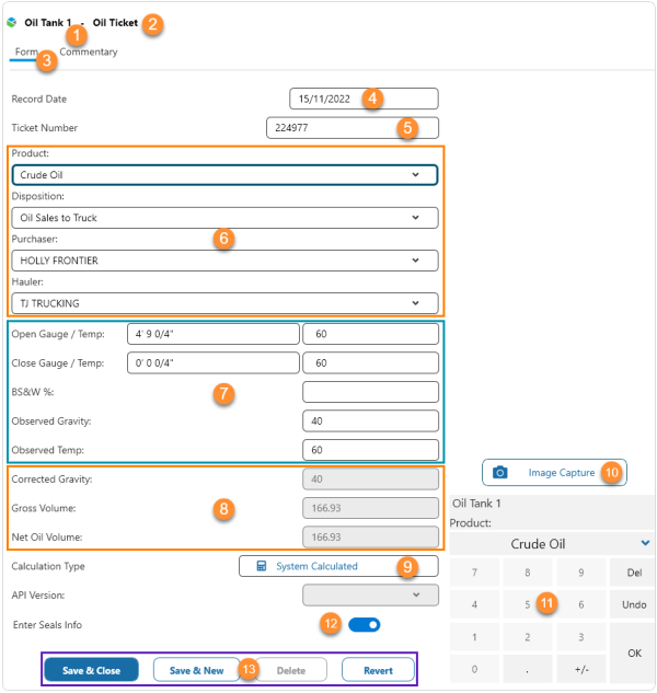 Comments can be added by selecting the Commentary tab at the top of the form.