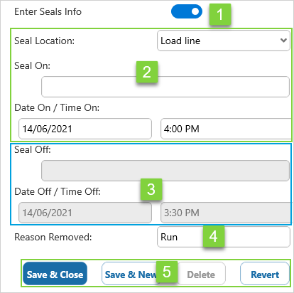 2. Seal On Details Enter the details of the new seal placed.