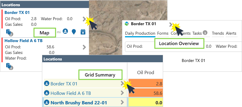 icon from the Map, Grid Summary or Location Overview.