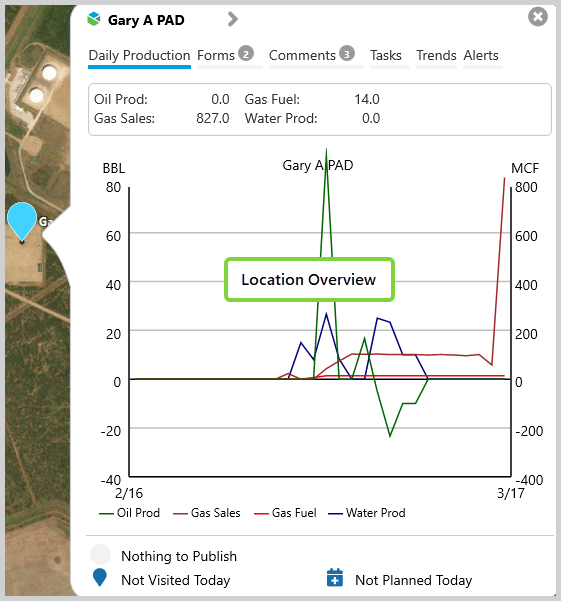 Location Overview is a part of Map View, and is a snapshot of what is happening at the selected location.