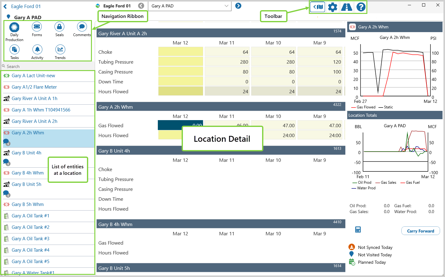 In it you will find a summary of Daily Production figures, and the latest Forms, Comments, Tasks, Trends, and Alerts.