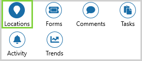In Location Detail view, select an entity to see its associated tasks. The Tasks icon displays below the entity name when there are assigned tasks.