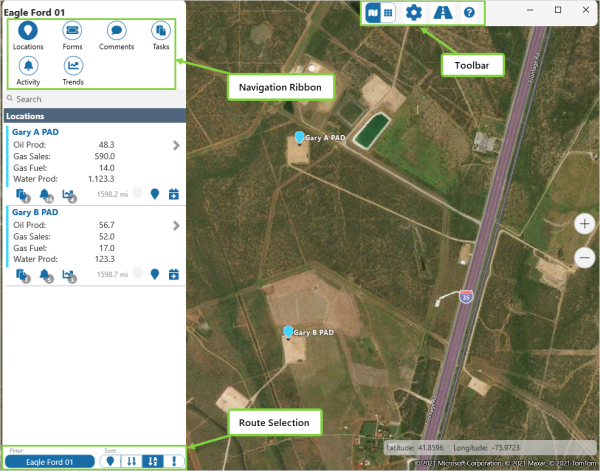 The Navigation Ribbon is the main way to access many of the Field Operator options. The ribbon is found at the top left side of each screen, except when the tools on the Toolbar are active.
