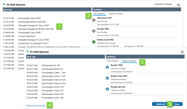 The Publish icons indicate the current synced, or published state of the data. Records marked Sync Pending will be automatically uploaded to the server when the device has an internet connection.