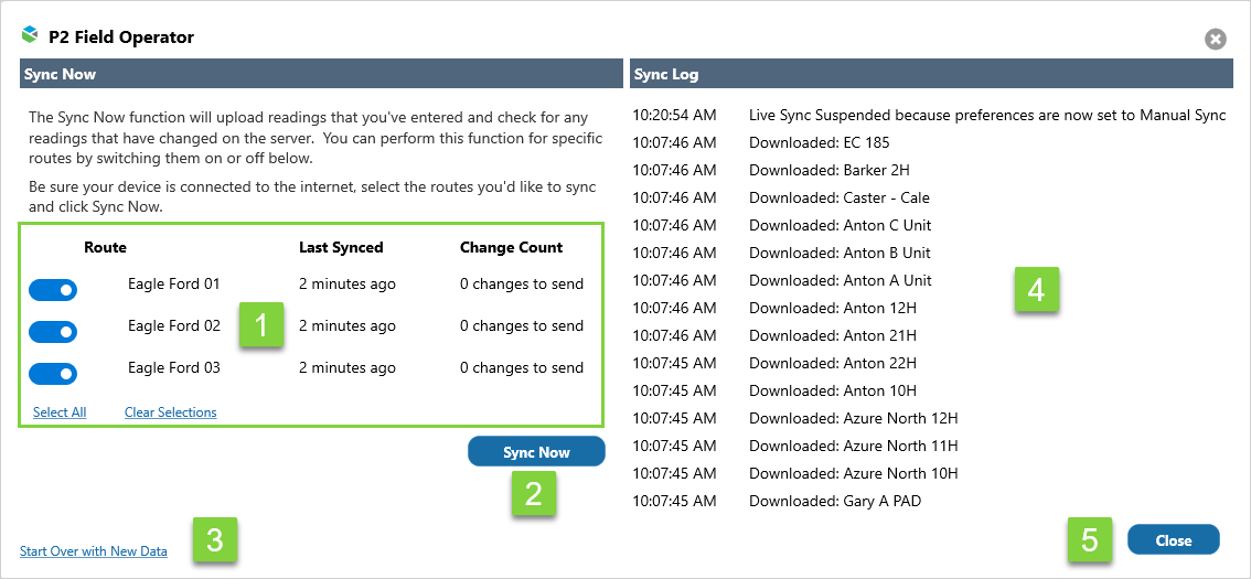 2. Sync Now Click Sync Now to upload readings and check the server for updates.