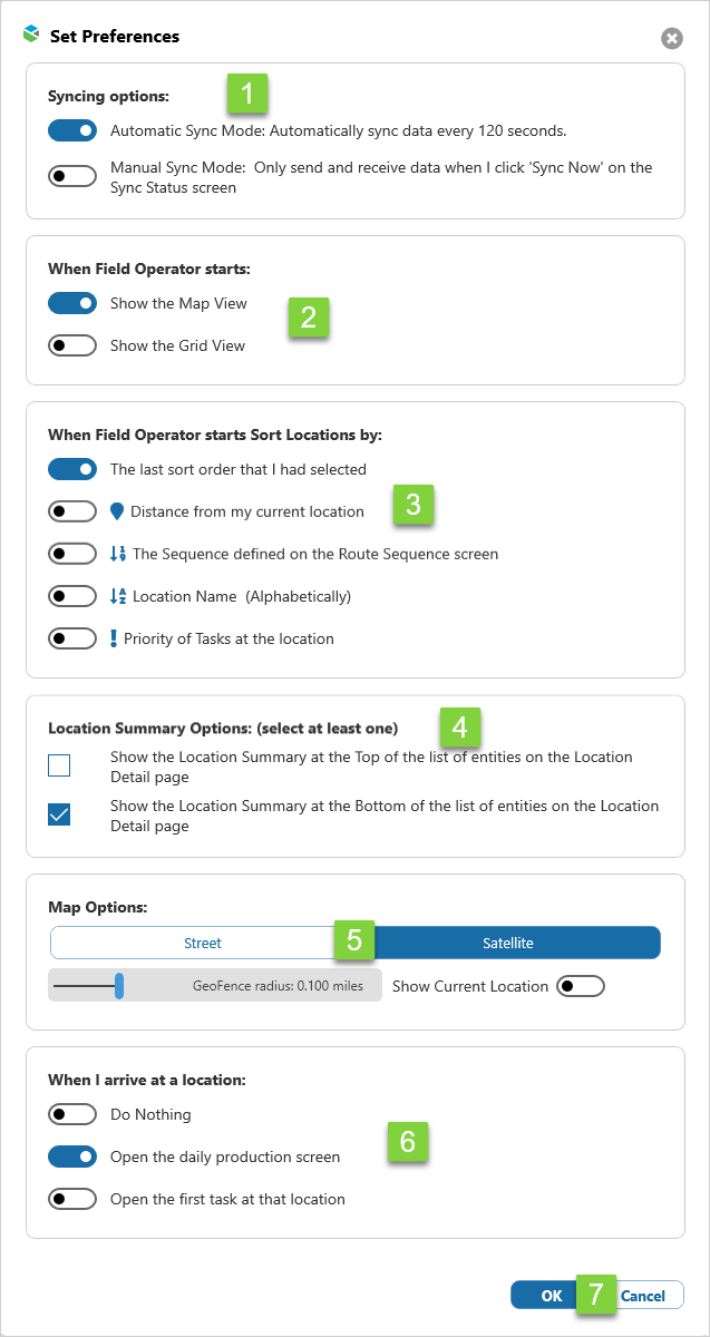 • Do Nothing: Field Explorer will not perform any specific functions. When the user opens the app, the screen shown will be the last screen that the user looked at.
