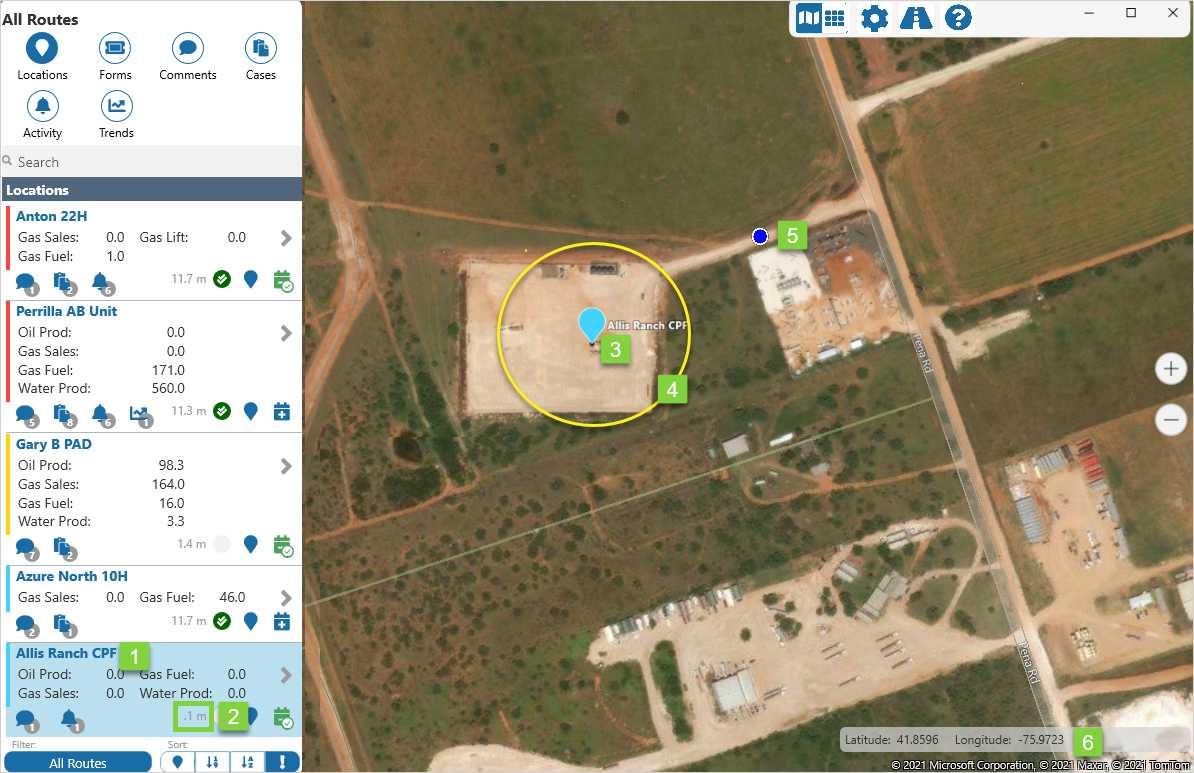 As you drive towards an entity's location a GeoFence, indicated by a yellow circle, appears on the map.