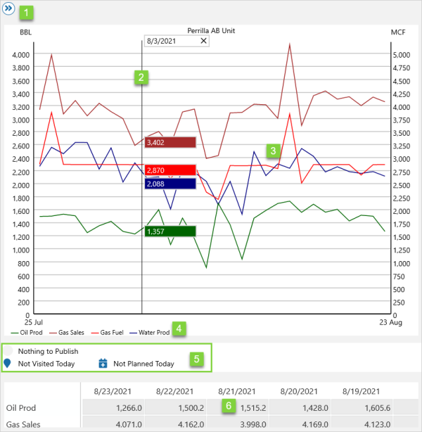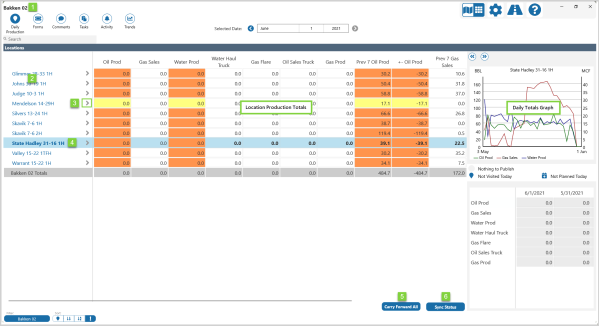 | Date Selection | Choose which day's production figures you would like to look at. Available when Daily Production is selected in the ribbon. |