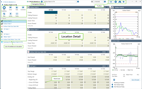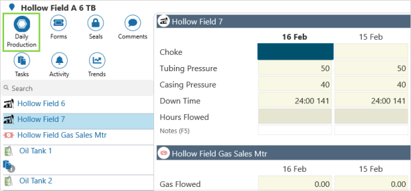 The entity Daily Production view. Enter your Daily Readings here.