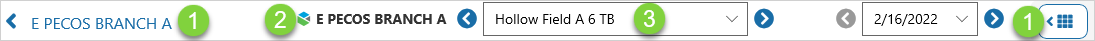 3. Location Selector Click on the forward and back chevrons, or the drop-down arrow, to select the desired location.