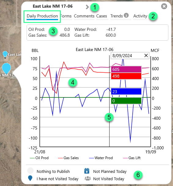 The Quick Reference Card is an easy to access snapshot of what is happening at a particular location. In it you will find a chart and summary of Daily Production figures, and the latest Forms, Comments, Cases, Trends, and Activity.