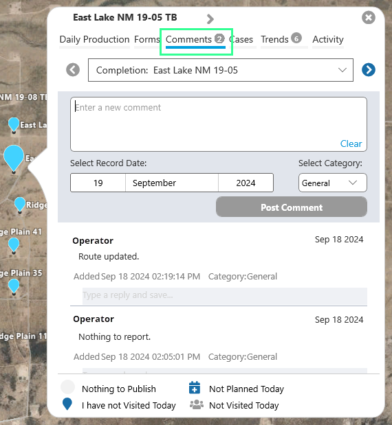 Click the Comments tab to add a new comment, and to open the list of Comments for the location.