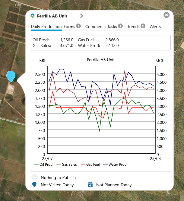 | 2. | Ribbon | Select from Daily Production, Forms, Comments, Tasks, Trends, and Alerts. Tasks and Trends are only available to Route Surveillance users. |