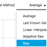 The Adaptive Raw sample method works differently from the other sample methods. The Calculation Engine uses an algorithm to transform raw data points into fewer data points for the consuming application (such as the P2 Explorer trend).