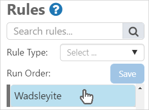 To change the order in which the rules run, click the grey bar beside the rule name and drag the rule to the new position, and then click Save.
