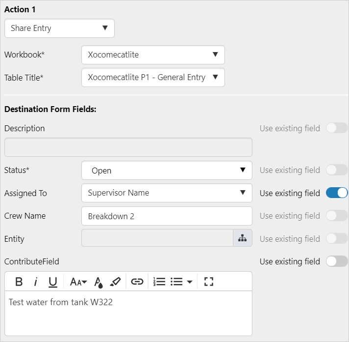 Rules Action: Share Entry