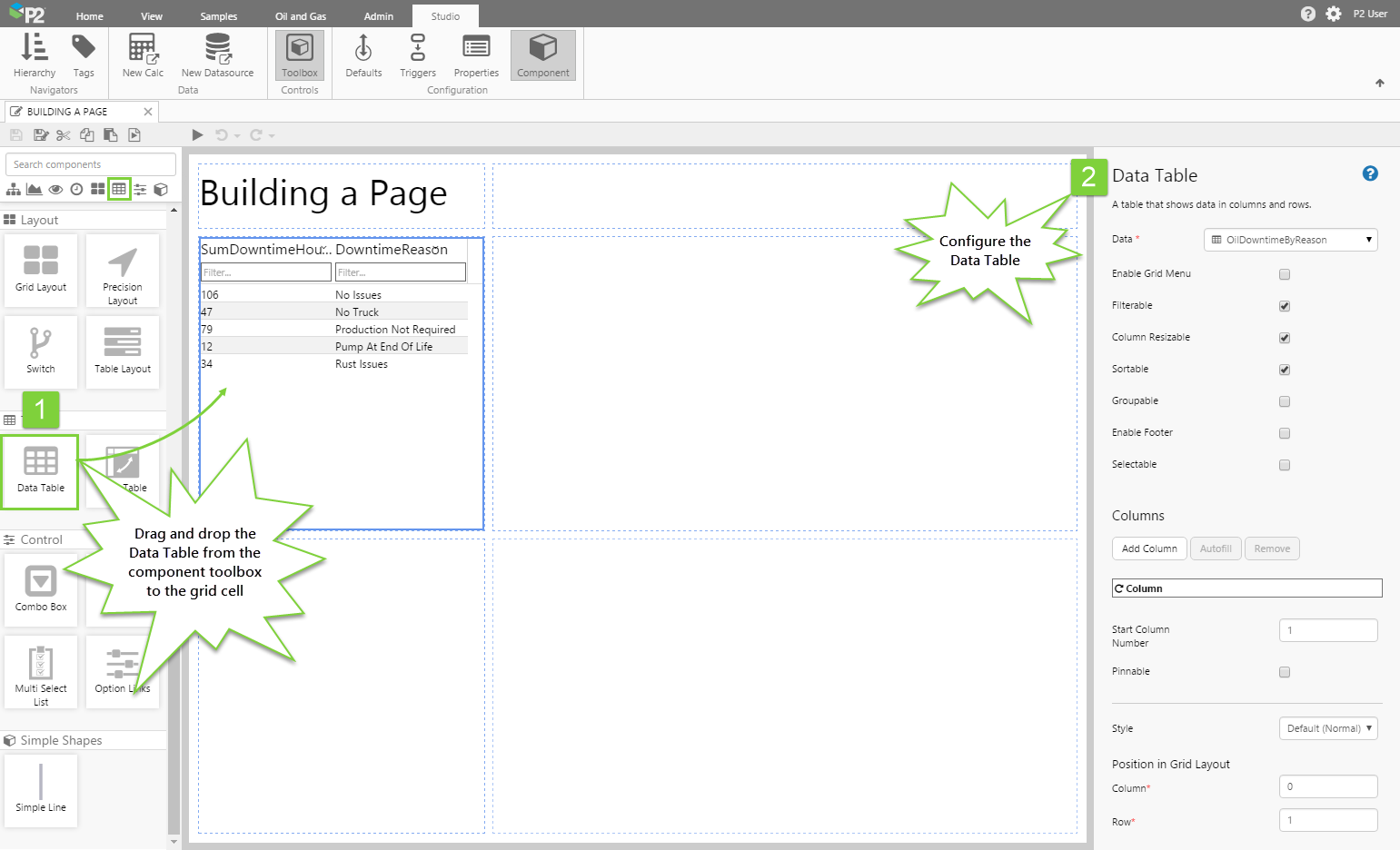 First, let's add and configure the Data Table component.