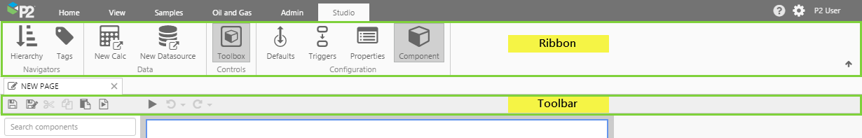 At this stage, it's worth familiarising yourself with the Studio ribbon and toolbar. Both contain various functions for editing a page.