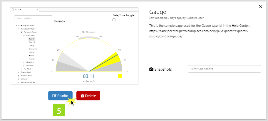 5. The page summary appears. Click Studio.