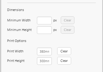 Click Clear to clear the print width/print height.