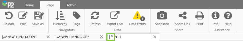 • The Page and Trend ribbon tabs both have the new Info button, used for opening the Display Information panel.