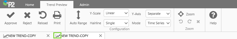 The Trend Preview ribbon tab is activated when an approver clicks the Preview preview-icon button for a trend that's pending approval, from their My Environment page.