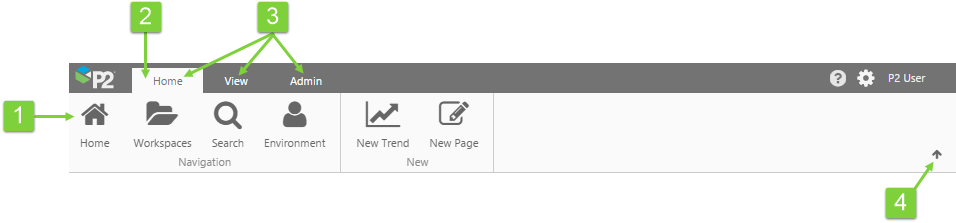 The P2 Explorer Ribbon is the main way to access the functionality of P2 Explorer.