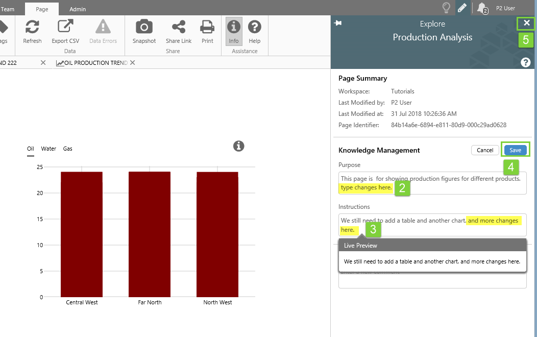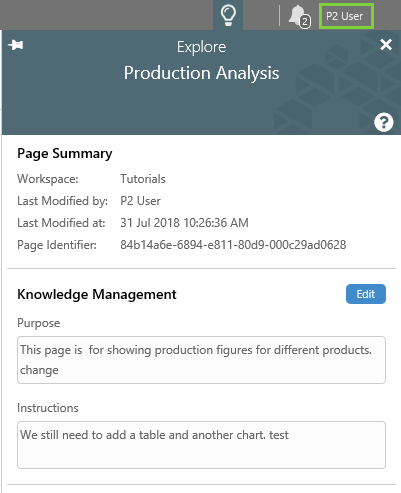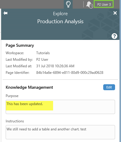 | 'P2 User' views the Knowledge Management fields for a Page. | 'P2 User' edits the Knowledge Management fields for the same page. | 'P2 User 3' views the changed Knowledge Management fields for the page. |