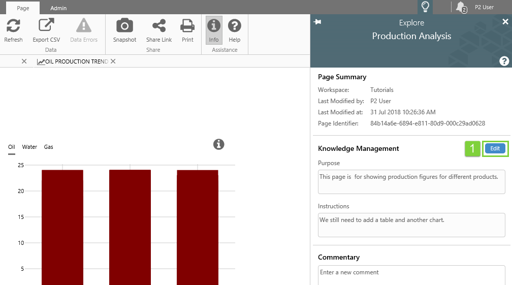 The Info Button is used to share contextual information for an area of your page. This information is available to all users of the page, for viewing or editing.