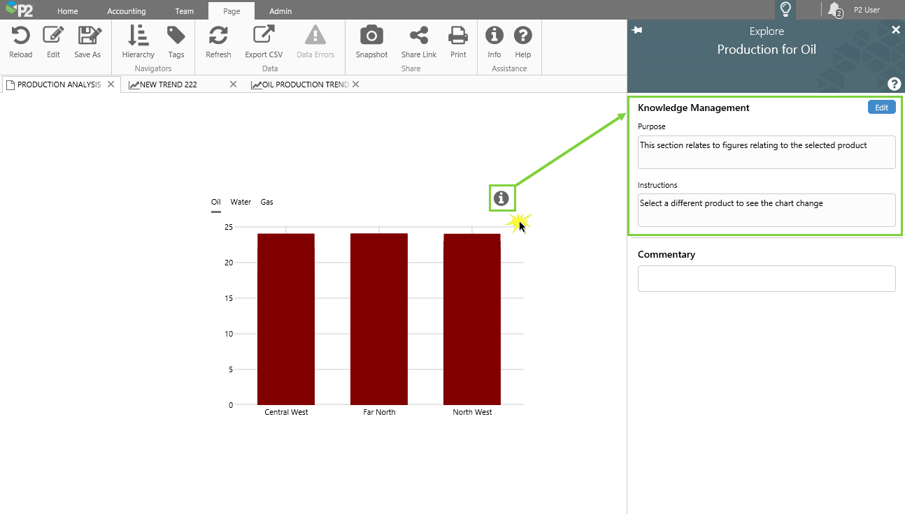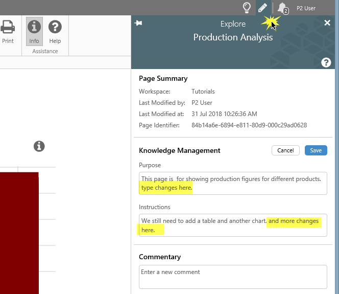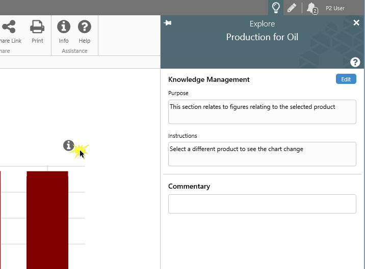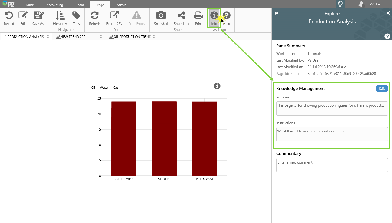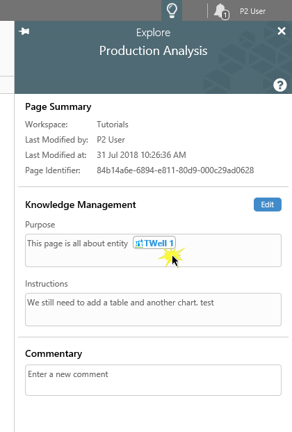 Knowledge Management is used for capturing and sharing knowledge about a public display (page or trend), or for an area of a page.